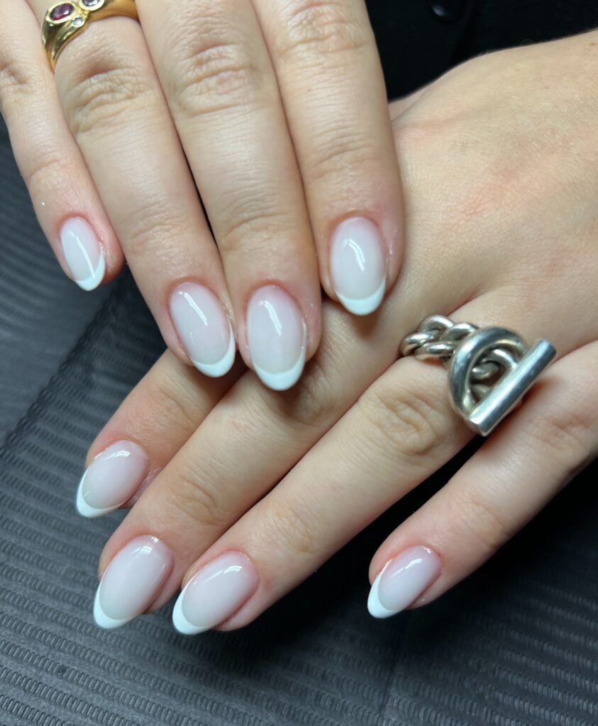 Micro-french blanche, french beige, ou milky nude.