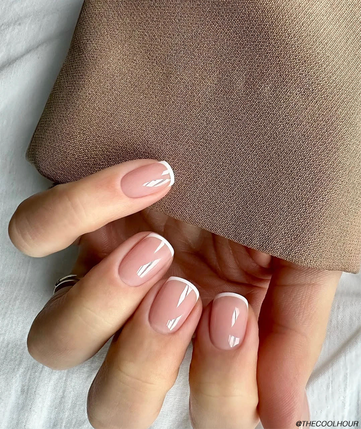Nude laiteux + micro-french blanche ou beige = le combo le plus chic.