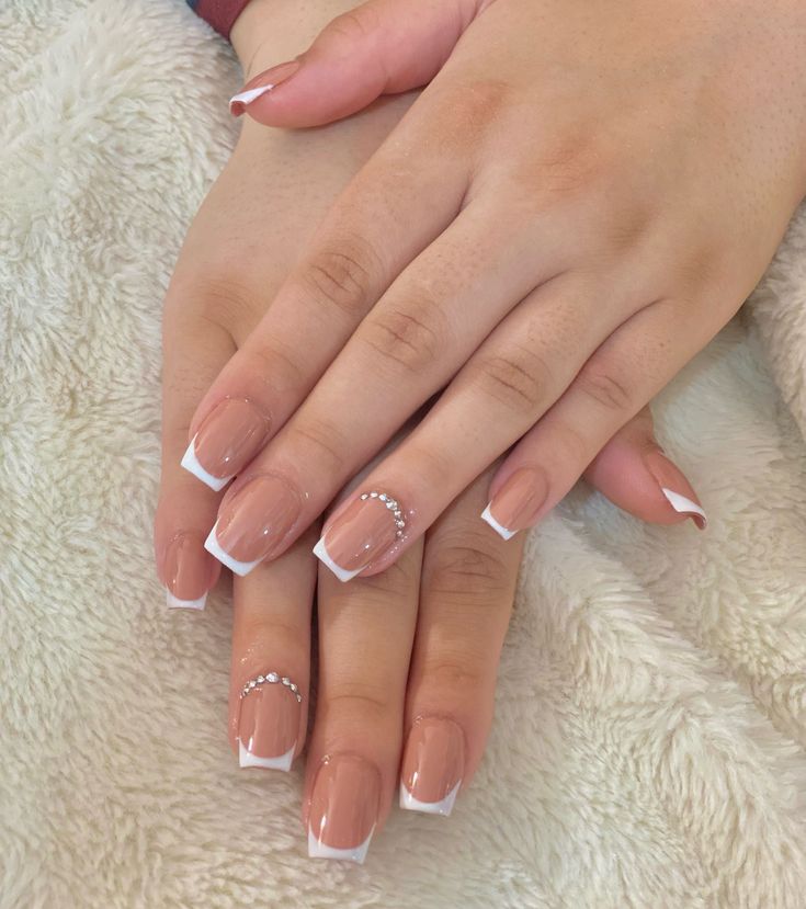 - 1) Micro-french blanche sur nude laiteux